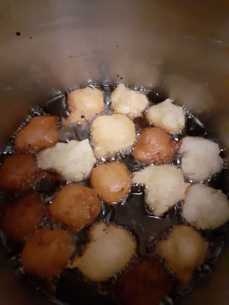 Переворачивайте пончики, чтобы они испеклись сверху и снизу. Они должны быть приятного коричнего цвета.
